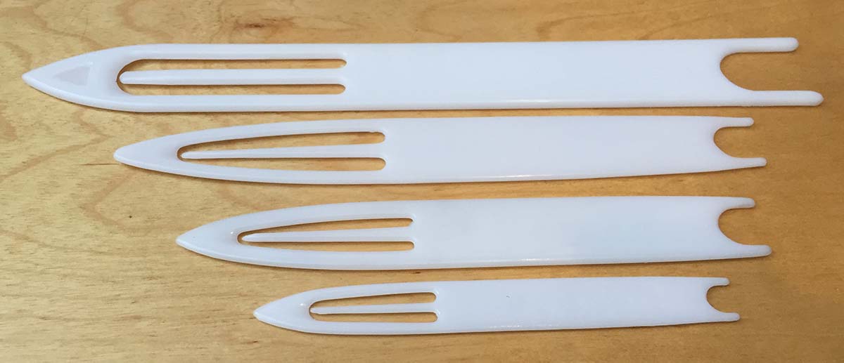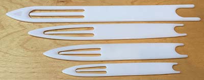 These Leclerc Netting Needles are made of nylon for flexibility and are ideal for pick-up, inlay and netting. Four different sizes of are available. (Click on Picture to Enlarge)