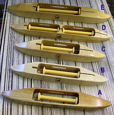 6122-5000 | D | Double Boat Shuttle with two 4" (10 cm) styrene bobbins. For use with floor looms when two threads need to be woven at the same time. |