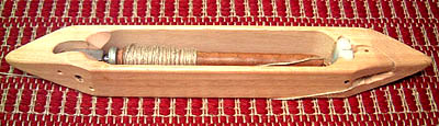 6122-1000 | B | Small Boat Shuttle with one 4" (10 cm) styrene bobbin. For use with table looms. | 1 1/8" x 1 5/8" x 11" (3 cm x 4.3 cm x 28 cm) |