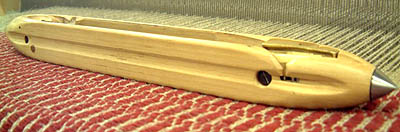 6122-3000 | C | Standard Boat Shuttle with one 4" (10 cm) styrene bobbin. For use with floor looms. | 1 3/8" x 1 3/4" x 11 1/4" (3.5 cm x 4.5 cm x 28.5 cm) |