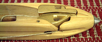 The Pirn holder on Leclerc End Feed shuttles is designed to hold the pirn in place while in use, but enables it to be quickly removed for winding. This feature ensures small snags in the yarn will not release the pirn during weaving causing the mechanism to jam and the weaver to have to waste time reseting the pirn and fixing the selvedge. This is especially important with textured or "hairy" yarn that may occasionally bind together.