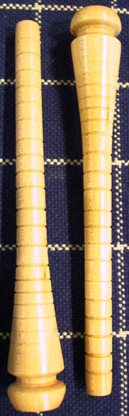 Additional Pirns can be ordered for the Leclerc Standard Flying Shuttle (picture to the left) as well as the End Feed Hand Shuttle, and Professional End Feed Flying Shuttle (both pictured to the right). The End Feed Hand Shuttle Pirns are made of hardwood while the End Feed Flying Shuttle Pirns are made of Nylon. Note: that these can only be used on the Shuttle they are designed for.